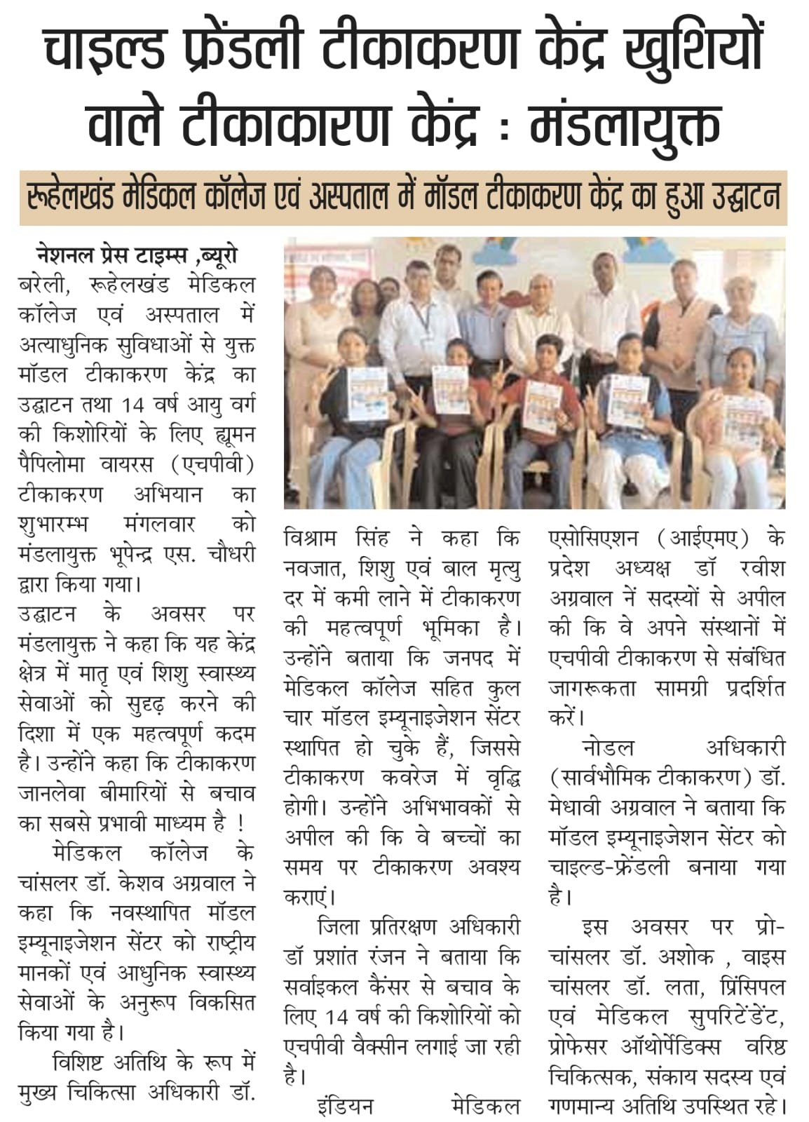 Rohilkhand Medical College and Hospital में आज निःशुल्क एचपीवी (ह्यूमन पैपिलोमा वायरस) टीकाकरण अभियान तथा मॉडल इम्यूनाइजेशन सेंटर का भव्य शुभारंभ किया गया। इस महत्वपूर्ण कार्यक्रम का उद्घाटन बरेली के आयुक्त Bhupendra S Chaudhary द्वारा किया गया।