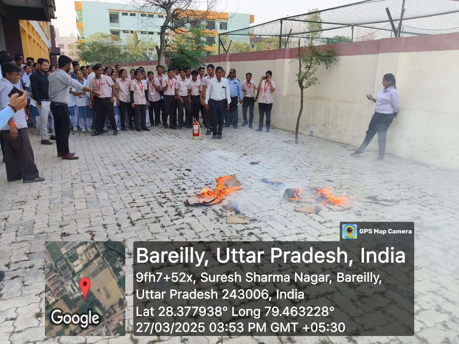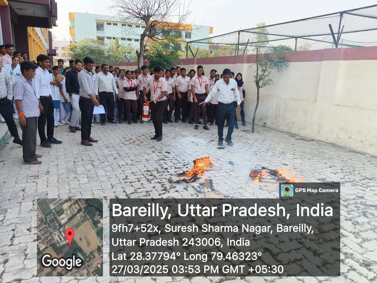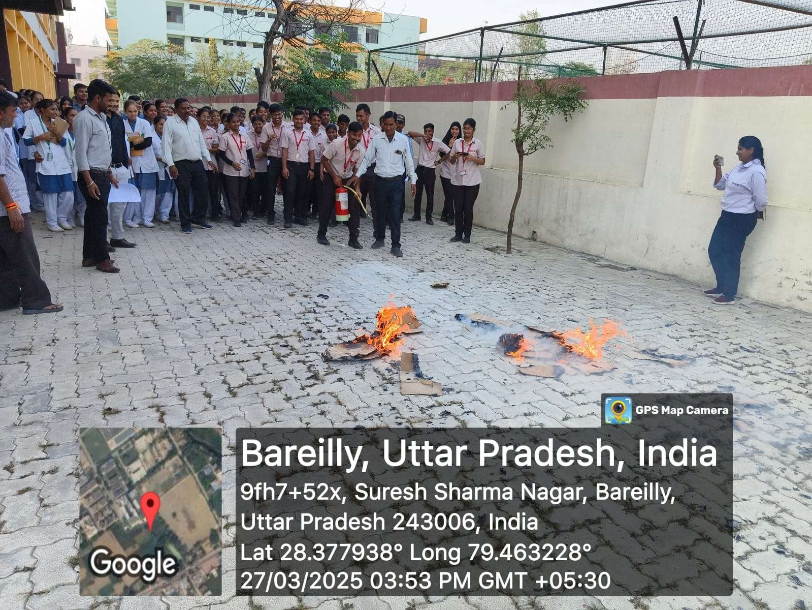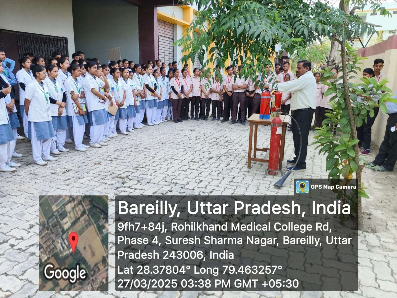 A fire safety mock drill was successfully conducted at Rohilkhand College of Nursing on 27th March 2025 to enhance awareness and preparedness among students, faculty, and staff. The drill aimed to educate participants on fire hazards, emergency response procedures, and evacuation protocols.
