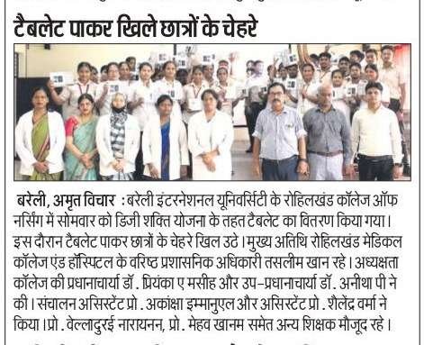डिजी शक्ति योजना के तहत बरेली इंटरनेशनल यूनिवर्सिटी के रोहिलखण्ड कॉलेज ऑफ़ नर्सिंग में टैबलेट वितरण किया गया |