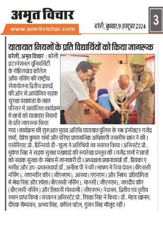 Bareilly international University, under national service scheme unit II, program on Sadak Suraksha Pakhwada 2024