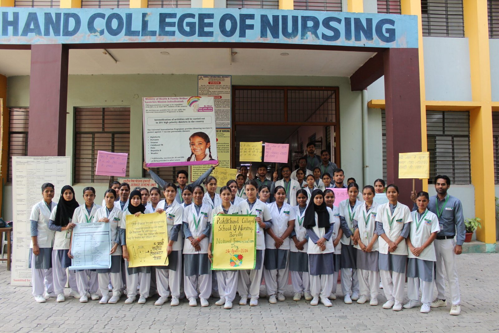- Students and participants carried placards and raised slogans promoting immunization